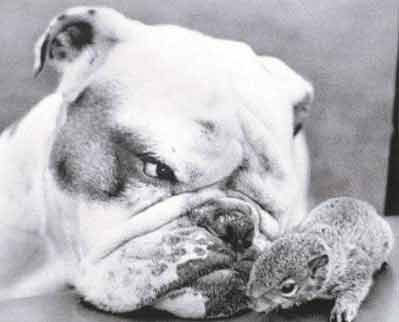 Dog meets chipmunck, Butch vs. Squeaky...best friends